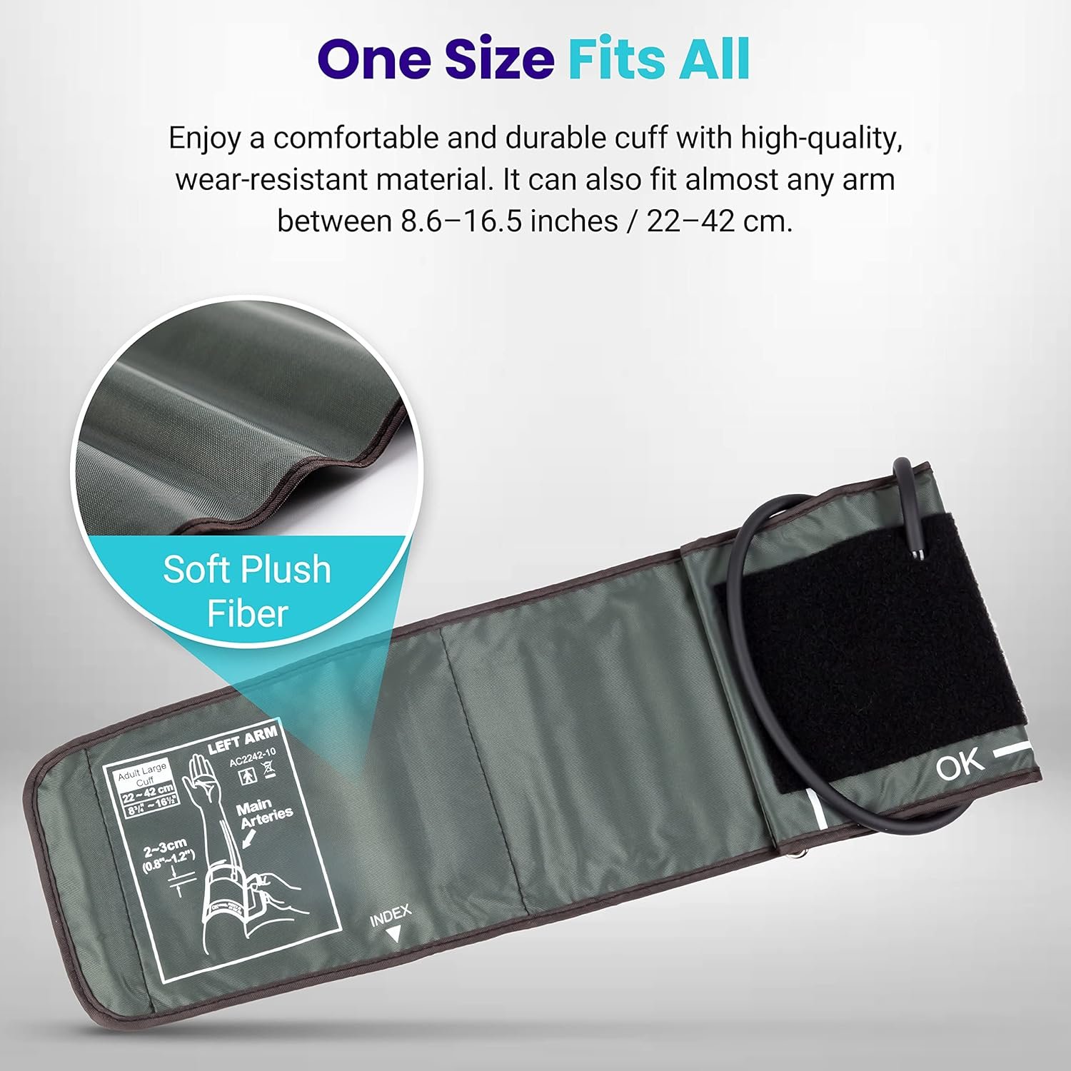 The 8.6–16.5 inch / 22–42 cm cuff can easily fit most arm sizes.