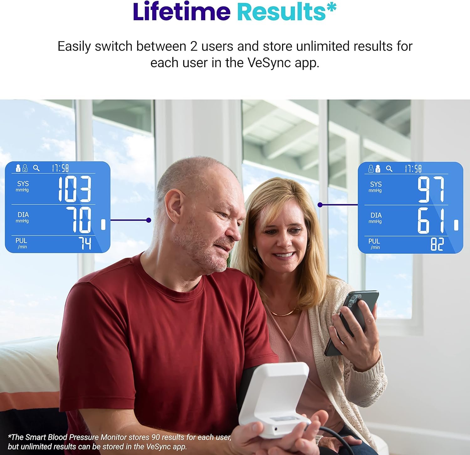 Connect to the VeSync app to view your blood pressure measurements from your smartphone, including long-term blood pressure analysis and more.