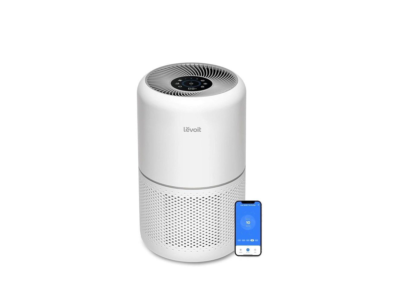 Refresh your home’s air with the Levoit Air Purifier. The Pre-Filter removes large airborne particles like dust and hair, the Main Filter captures at least 99.97% of airborne particles down to 0.3 microns, and the Activated Carbon Filter removes smoke, odors, fumes and VOCs (Volatile Organic Compounds). This air purifier cleans the air in a room up to 1,073 ft² with noise levels as low as 22dB, helping you breathe cleaner air while maintaining a peaceful home.
