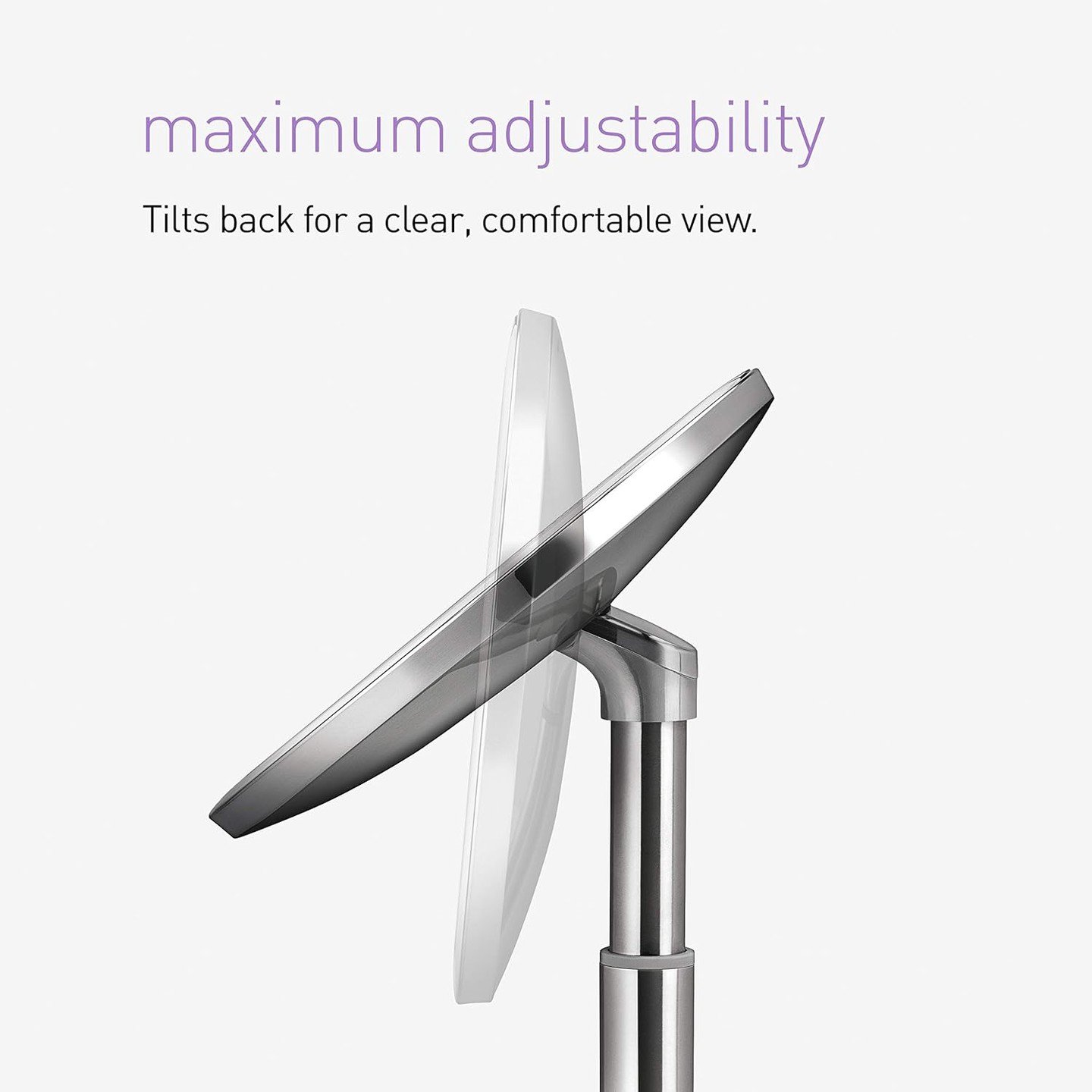 Lights up automatically as your face approaches. Its tru-lux light system simulates natural sunlight, allowing you to see full color variation, so you’ll know when your makeup is color-correct and flawless. Touch-control brightness bar gives you fast, intuitive control over a continuous range of brightness. It also has a candlelight setting, so you can check your look in low light before you go. Long-lasting surgical-grade LEDs won’t burn out or diminish even after years of use. Cordless and rechargeable — one charge lasts up to 5 weeks. 5x magnification is ideal for providing exceptional detail while still allowing you to see your entire face at once.