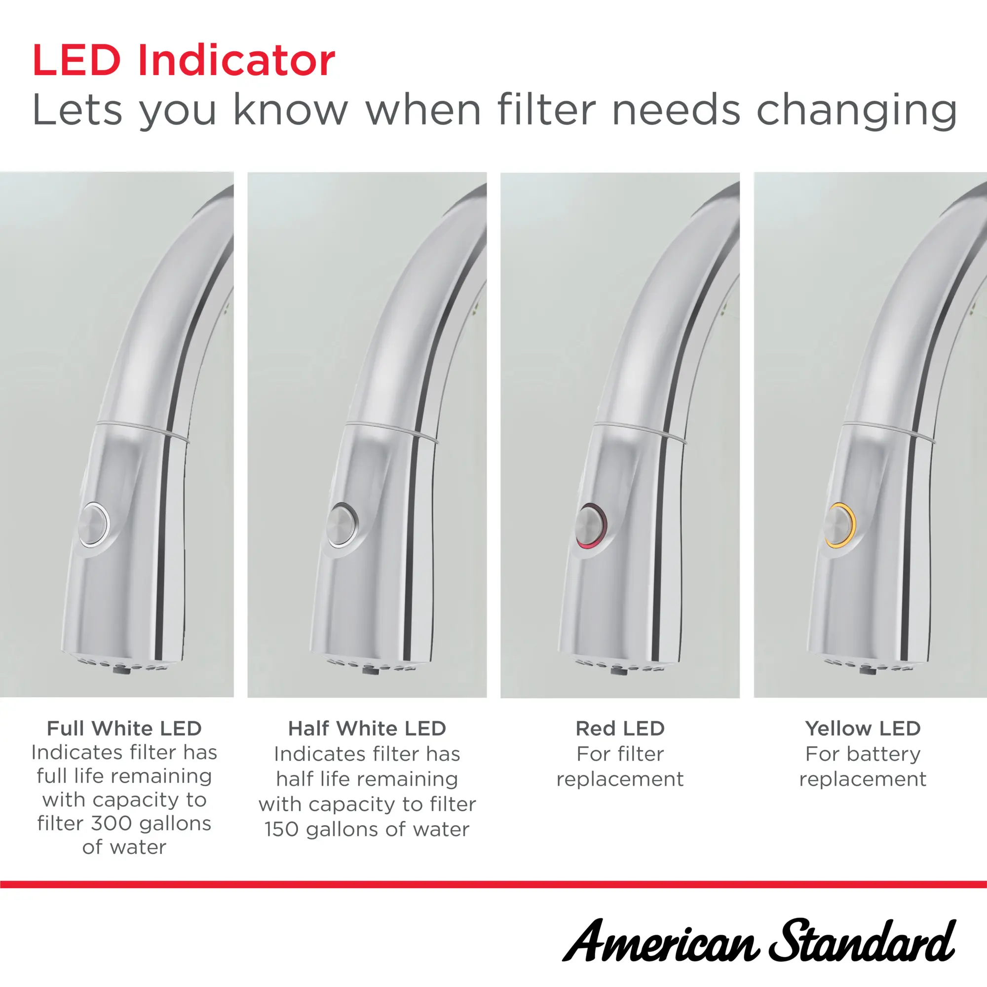 LED indicator on spray head lets you know when filter or battery need replacing