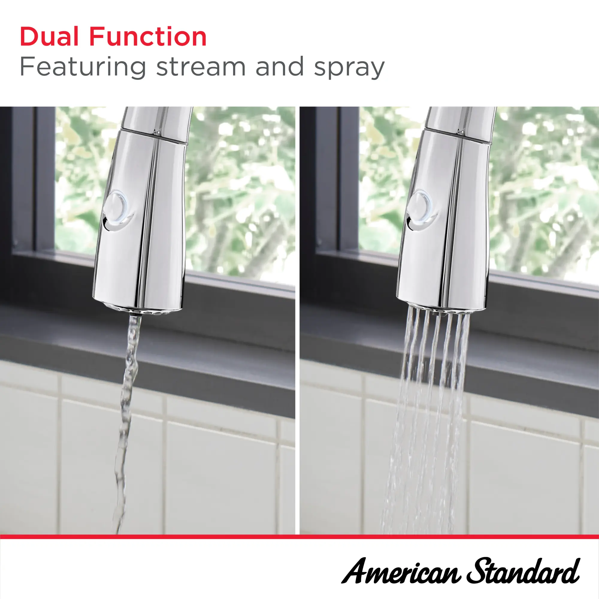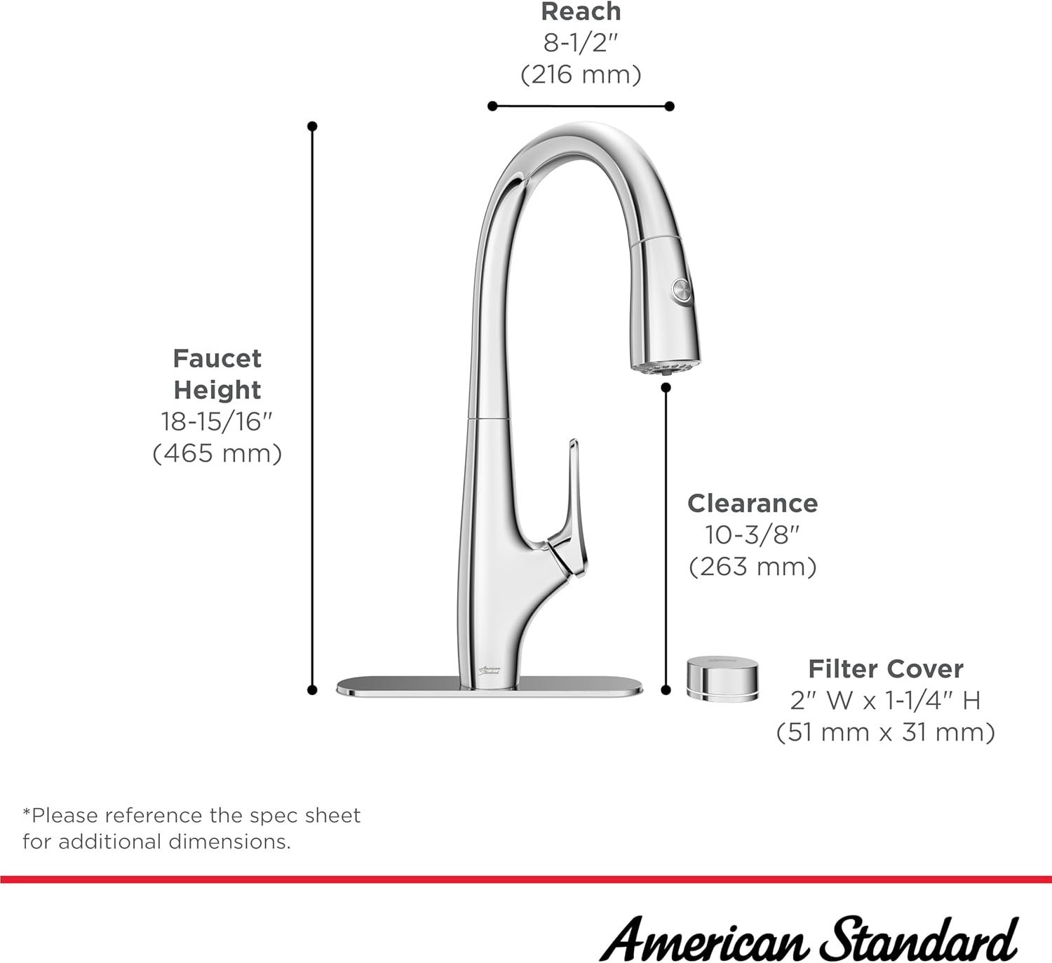 The Saybrook Filtered Kitchen Faucet from American Standard puts clean filtered water at your fingertips, eliminating reliance on plastic water bottles, heavy jugs, and bulky external filters. For drinking or cooking, simply push the button on the spray head for cold filtered water. For ordinary tap water, use the lever handle. Engineered with two separate water channels to remove any chance of mixed water flow. LED indicator light lets you know when the filter needs to be replaced. This innovative filtered kitchen faucet allows for easy, above-the-deck filter replacement or, if deck space is limited, the water filter can be installed on the inside wall of the cabinet.