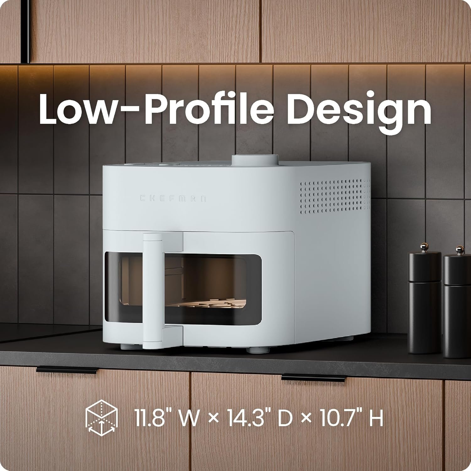 With a high-powered DC motor, the Crispinator reaches an incredible 450°F for nonstop convection cooking. With improved heating times and whisper-quiet performance, this Chefman air fryer cooks faster than ever!