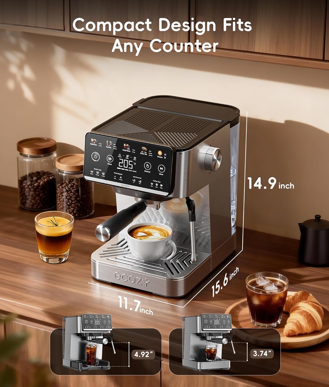 Discover the art of coffee made effortless with the ecozy Brezzano Elite. Guided by BaristaSense Technology, it intuitively fine-tunes pressure, temperature, and flow to craft your perfect cup—espresso, coffee, cold brew, or over ice. Dual NTC-PID control ensures rapid heat and lasting consistency, while the vivid interactive display brings clarity and calm to every step. From morning ritual to evening unwind, Brezzano Elite transforms everyday coffee into a refined experience.