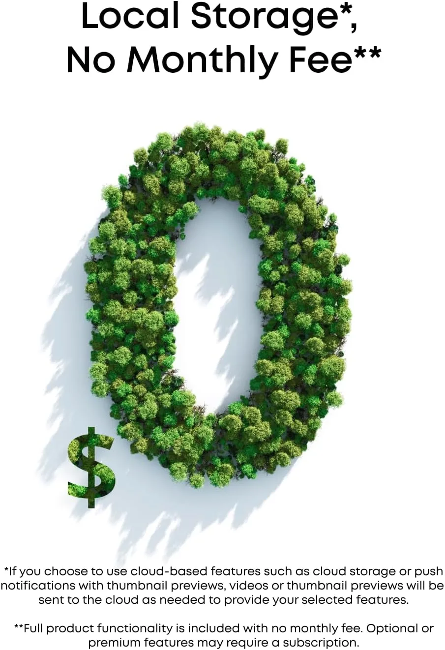 Keep your footage private with a microSD card up to 128 GB (microSD card not included), with no subscription fees.