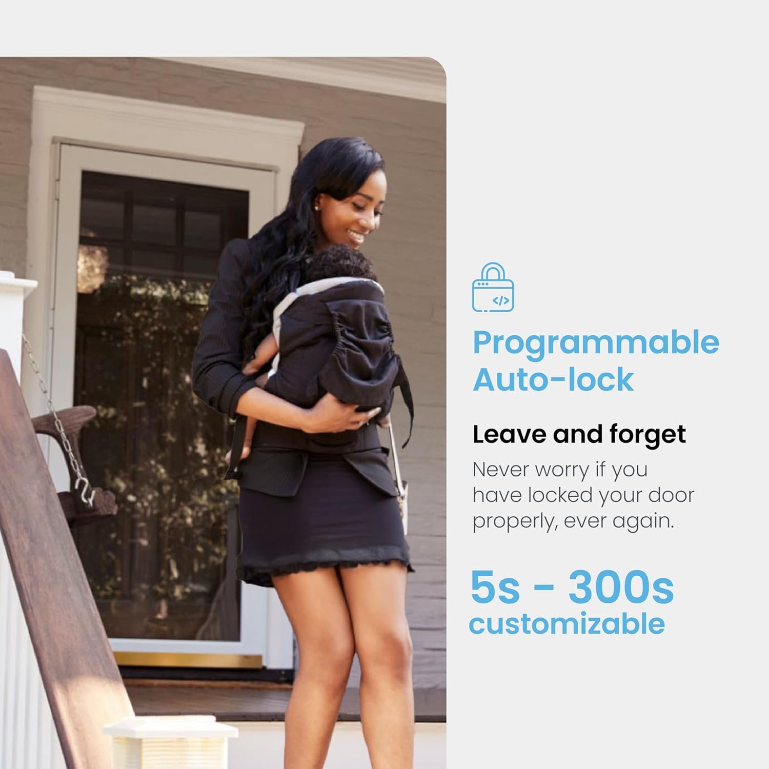 The Lockly Smart Lock fits right or left swing doors that are 1 3/8” to 2” thick. You can install it in just 15 minutes with common tools—making it a great upgrade for your front door.