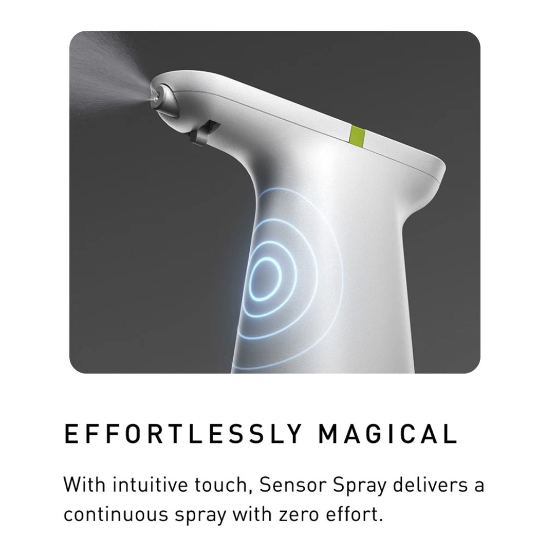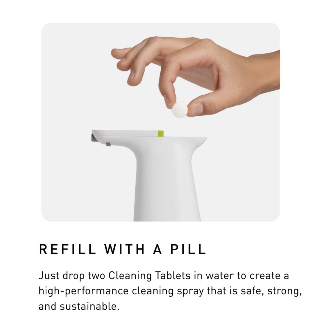 The most effortless way to clean, simplehuman’s sensor spray has an intuitive touch sensor that activates a continuous spray. Three controlled modes—ultra-precise jet, wide-coverage cone or super-fine mist—allow you to adjust the spray depending on the task. Rechargeable with included magnetic charger, and one charge lasts 3 months. Pair with the specially formulated cleaning tablets as well as our clean cloth for a sustainable cleanup solution or fill with just water and use for hair or plant care.