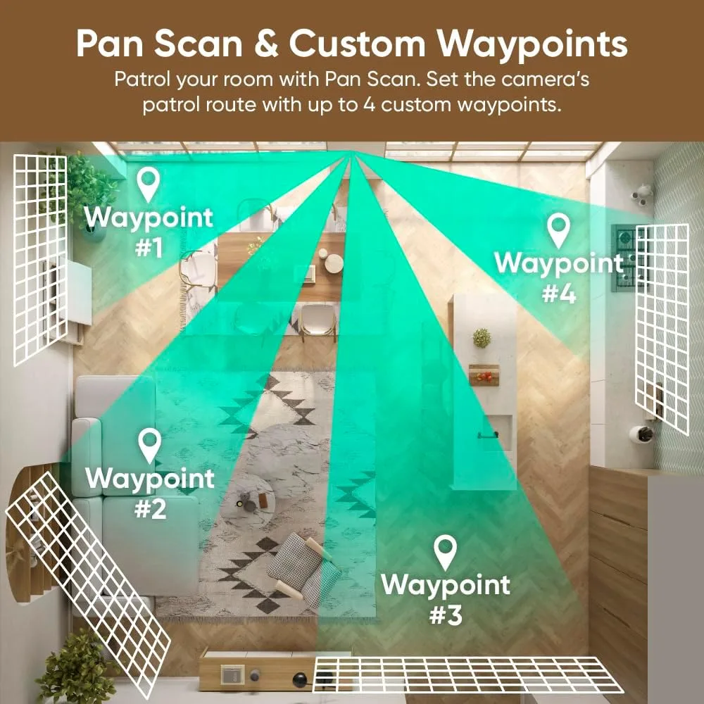 Patrol your room with Pan Scan. Set the camera’s patrol route with up to 4 custom waypoints.