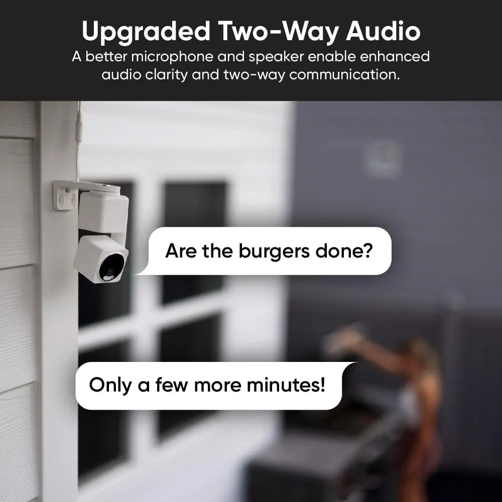 Communicate clearly through upgraded speakers and microphones—great for monitoring pets or greeting visitors from your security camera indoor.