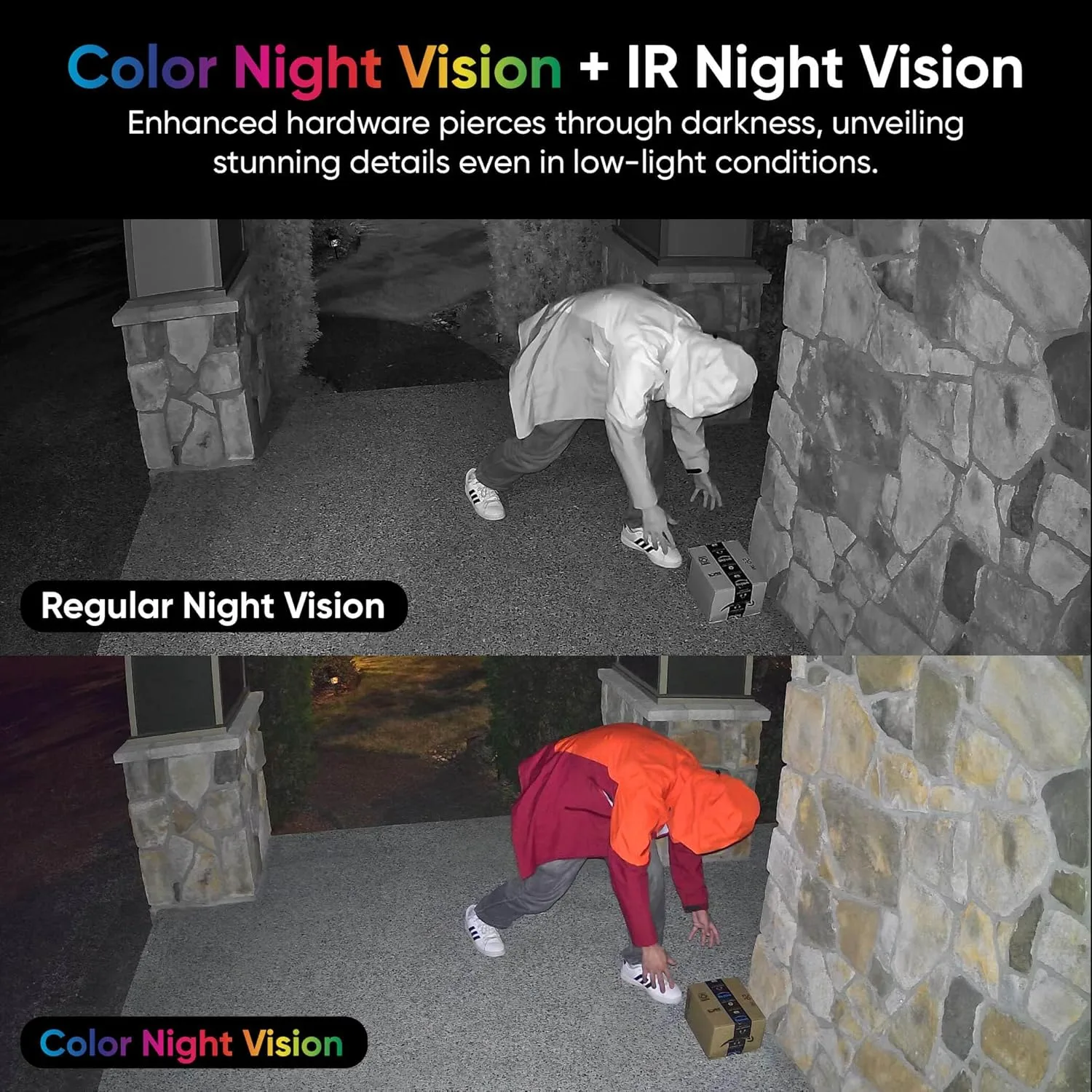 Enhanced IR and spotlight illumination deliver full-color nighttime footage, while the built-in siren adds extra security as a proactive outdoor security camera.